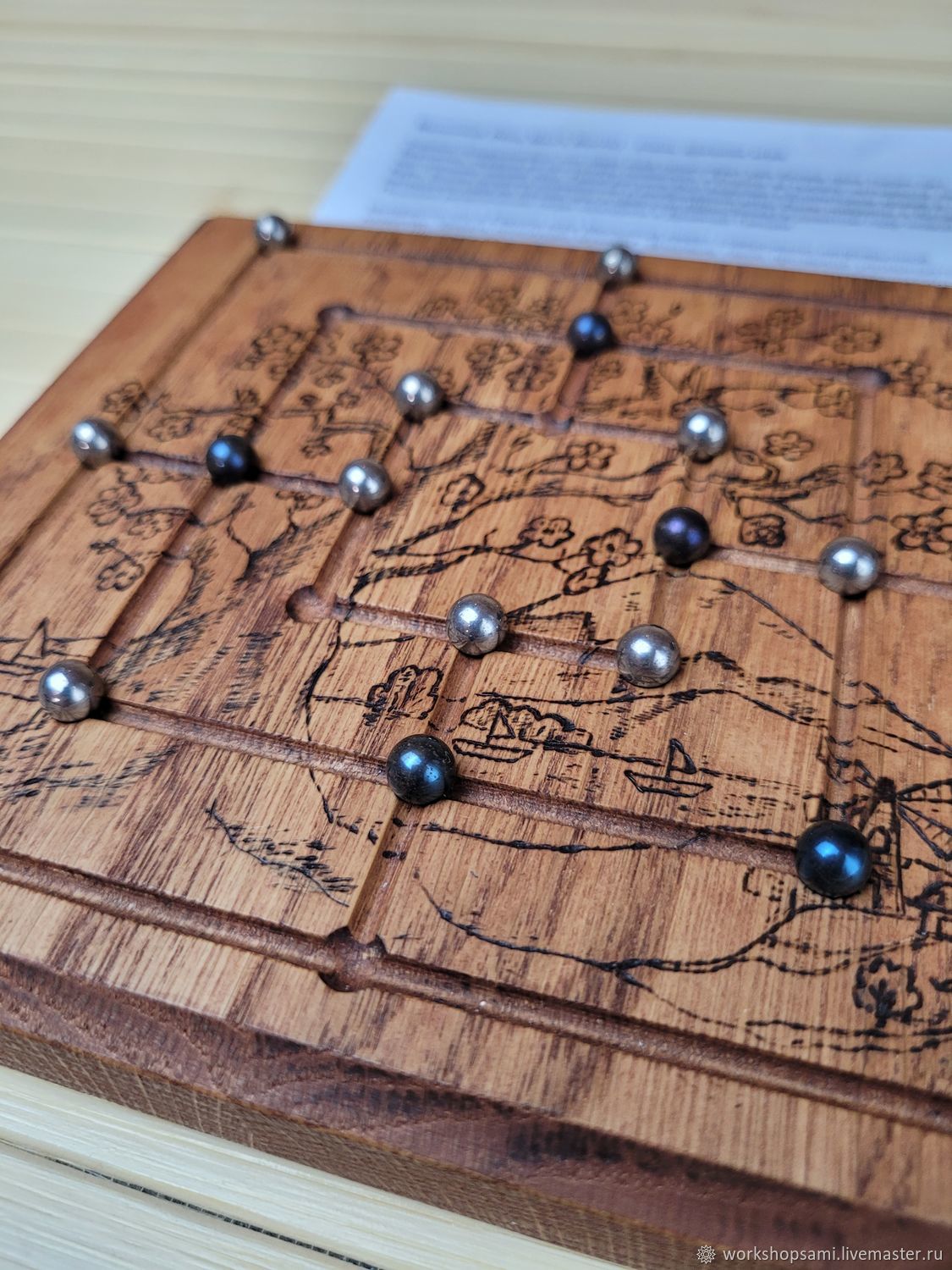 Правила: Начало - игровое поле пустое, игроки по очереди выставляют фишки на любое свободное место, стремясь выстроить «мельницу». Если получается выстроить «мельницу», игрок забирает с поля любую фишку противника. Далее игроки по очереди передвигают фишки на свободные места вдоль линий, также стараясь построить «мельницу» и забрать фишки противника. Если удаётся построить два ряда по три фишки, забирается две фишки. Мельницу можно на одном месте строить несколько раз, но фишка снимается только за первое построение. Когда у игрока остаётся только три фишки, он получает преимущество: в свой ход может переставлять фишку, не обращая внимания на линии на игровом поле. Проигравшим считается тот, кто больше не может сделать ходов или имеет меньше трёх фишек и не в состоянии построить «мельницу».